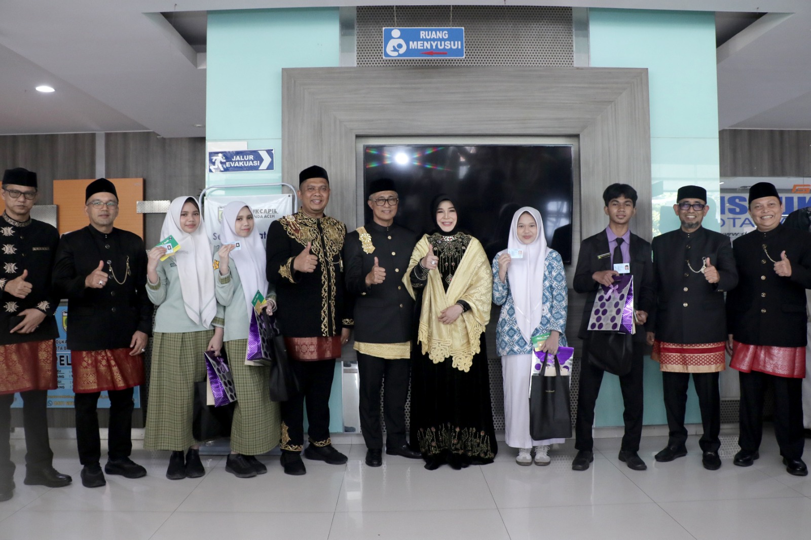 Penyerahan dilakukan langsung oleh Wali Kota Banda Aceh, Illiza Sa’aduddin Djamal, didampingi Sekretaris Daerah Kota Jalaluddin dan Pimpinan KCU Bank Aceh Syariah Andri Wardani, Rabu (22/4/2026). Prosesi ini turut disaksikan oleh sejumlah pejabat, termasuk Asisten Administrasi Umum M Nurdin, Kepala Dinas Kependudukan dan Pencatatan Sipil (Disdukcapil) Heru Triwijanarko, serta jajaran lainnya.